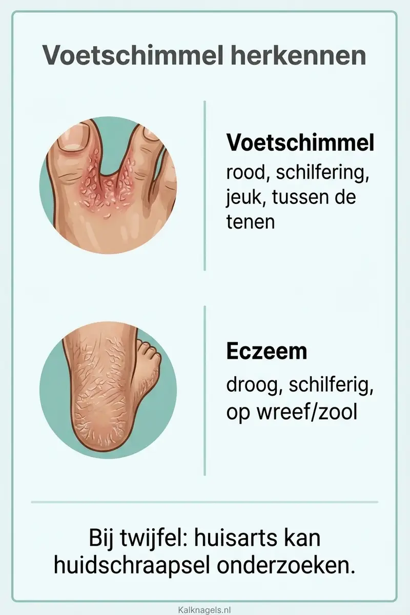 Let op: een veelgemaakte fout is voetschimmel verwarren met eczeem of droge huid. Het verschil: